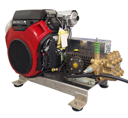 Specification Details Brand Stealth Made In USA Engine Honda GX690 V-Twin OHV, 4-Stroke (Electric Start) Engine Displacement 688cc Pump General Pump TSF2021 (Triplex, Belt-Driven) Pump Max Flow Rate 8.5 GPM @ 3600 PSI Operational Flow Rate 8.0 GPM @ 3500 PSI Unloader Valve General Pump Trapped Pressure Unloader Unloader Rated Pressure 4050 PSI (Max 4500 PSI) Unloader Max Flow Rate 21 GPM Skid Material Aluminum Muffler Starter-side muffler (can be relocated to oil filter side upon request) Included Oil & Oil drain hoses Not Included Gas tank, battery cables Warranty - Engine 3 Years (Honda GX690) Warranty - Pump 5 Years (General Pump) + Lifetime Forged Brass Manifold Guarantee
